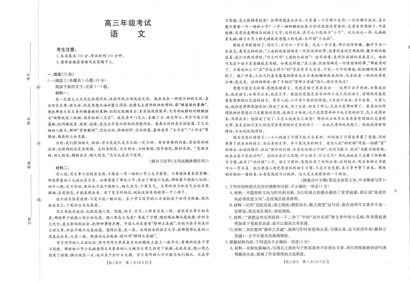 陕西省2025届高三上学期10月联考 语文.pdf