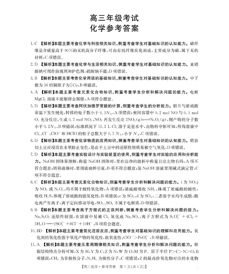 陕西省2025届高三上学期10月联考 化学答案.pdf