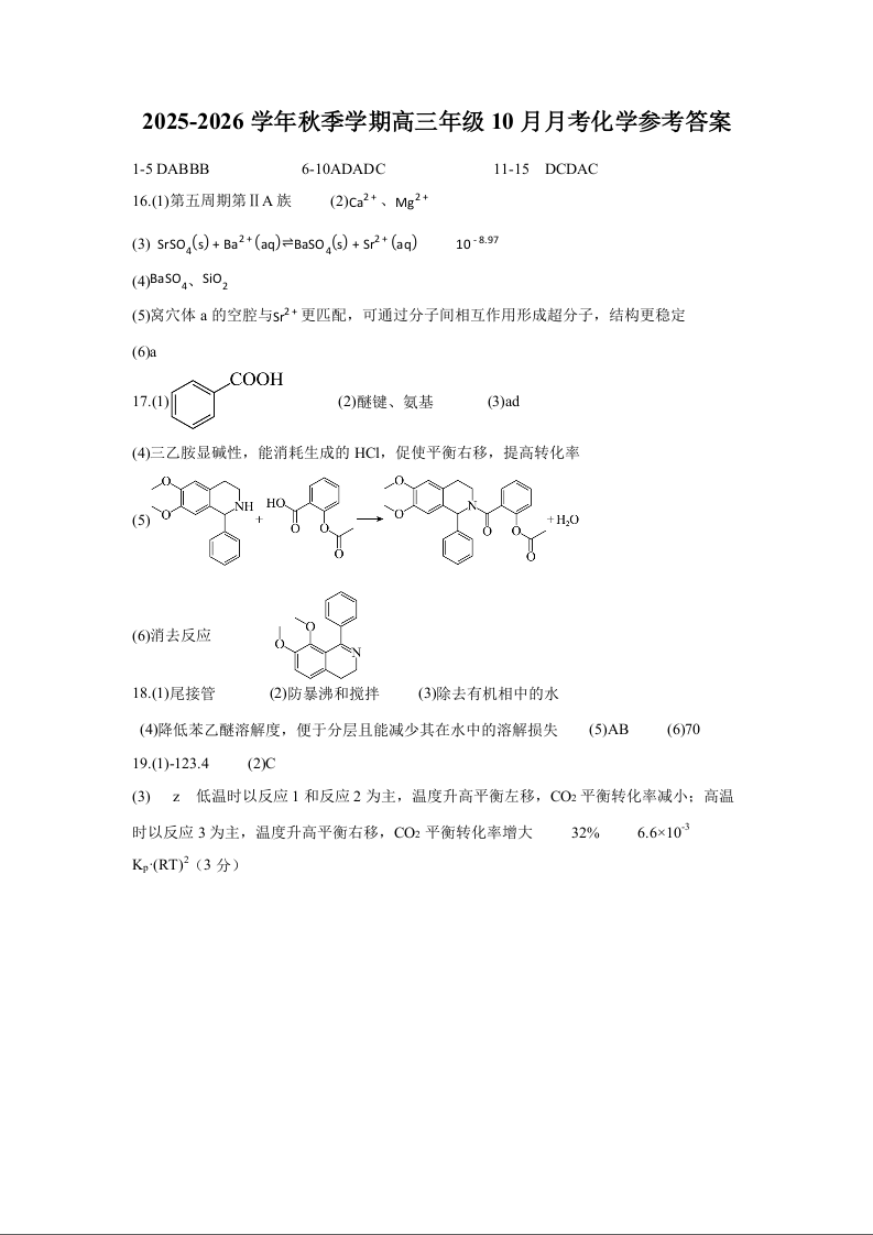 荆州中学2025-2026学年秋季学期高三年级10月月考 化学答案.docx