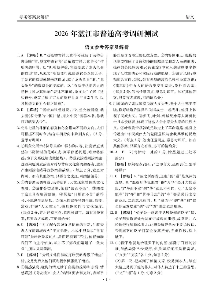 广东省湛江市2026年普通高考调研测试 语文答案.pdf