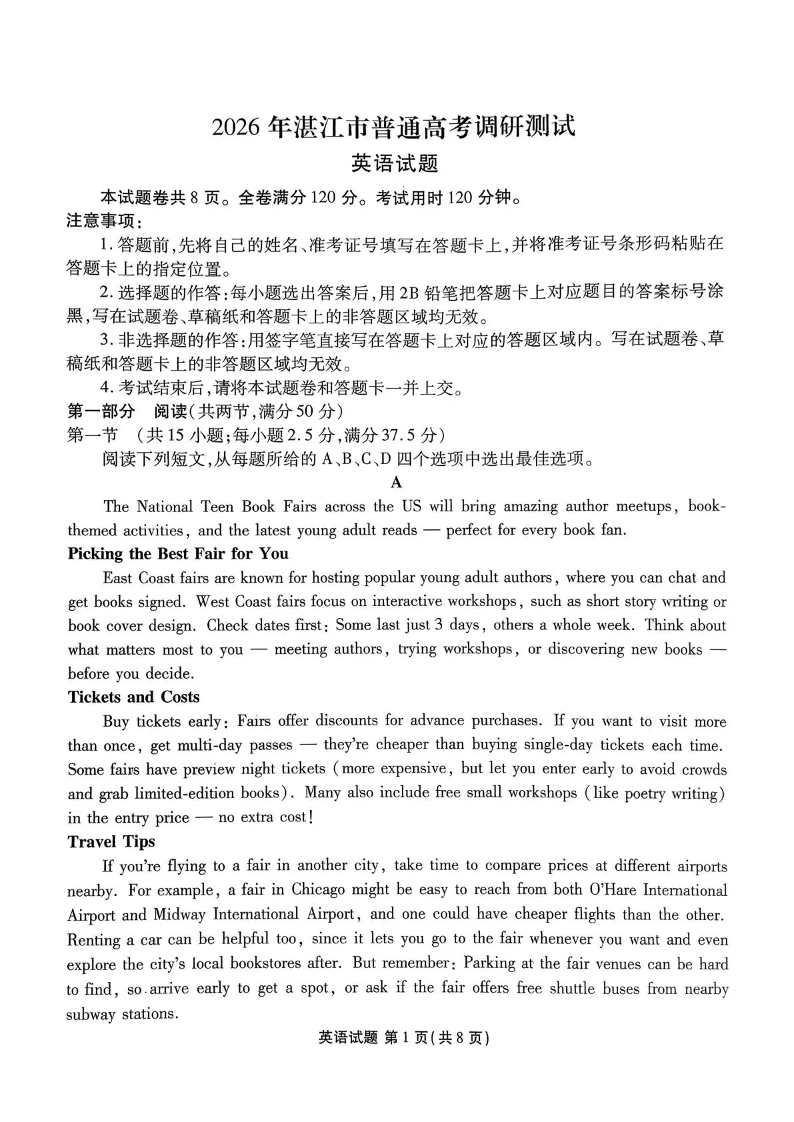 广东省湛江市2026年普通高考调研测试 英语.pdf