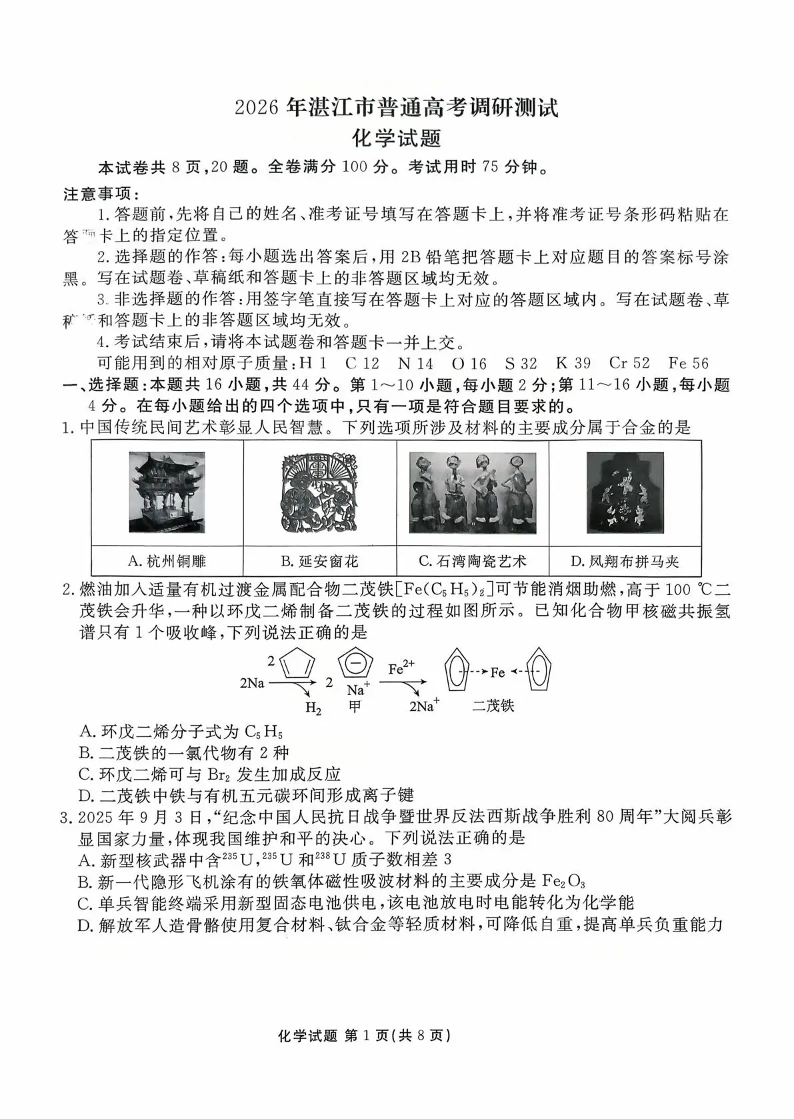 广东省湛江市2026年普通高考调研测试 化学.pdf