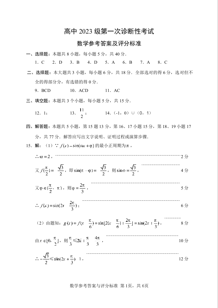 “元三维大联考”2023级高三第一次诊断考试 数学答案.docx