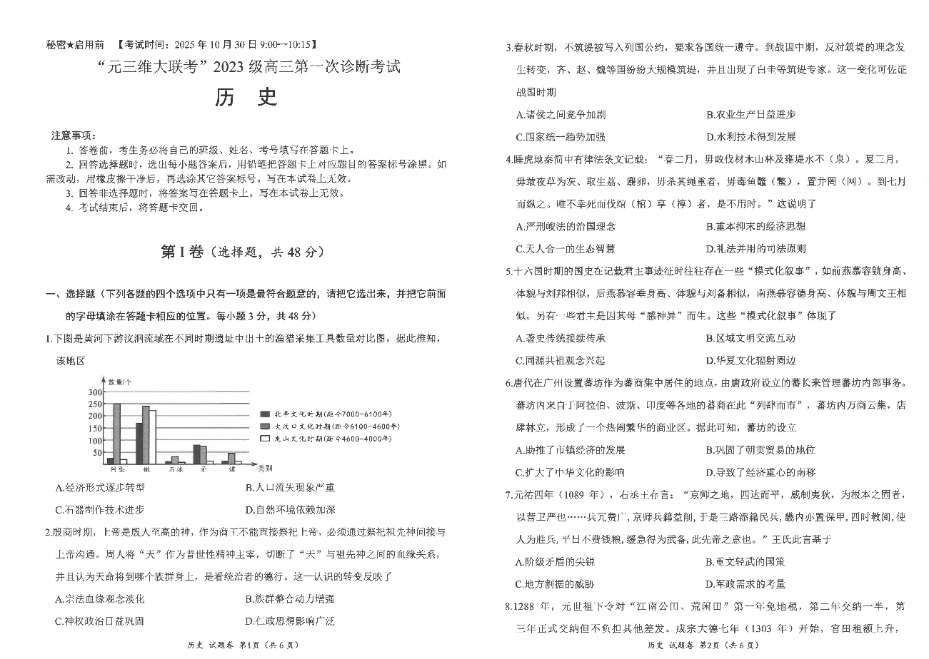 “元三维大联考”2023级高三第一次诊断考试 历史.pdf
