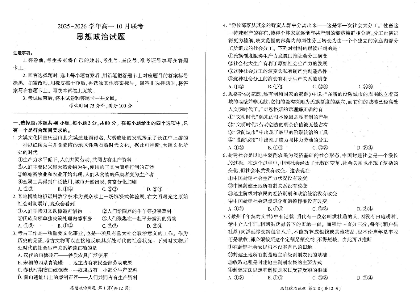 辽宁省朝阳市重点高中2025-2026学年高一上学期10月联考 政治试题(含答案).pdf