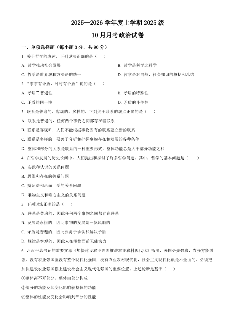 湖北省荆州市沙市中学2025-2026学年高一上学期10月月考 政治.docx