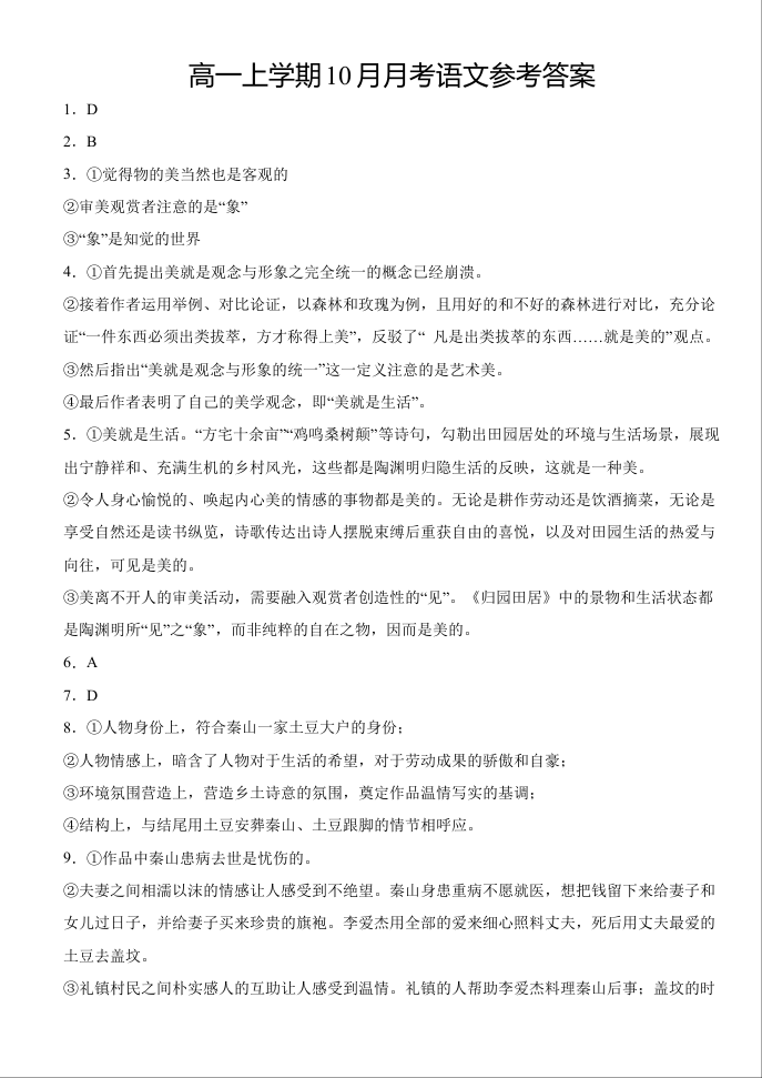 湖北省荆州市沙市中学2025-2026学年高一上学期10月月考 语文答案.docx