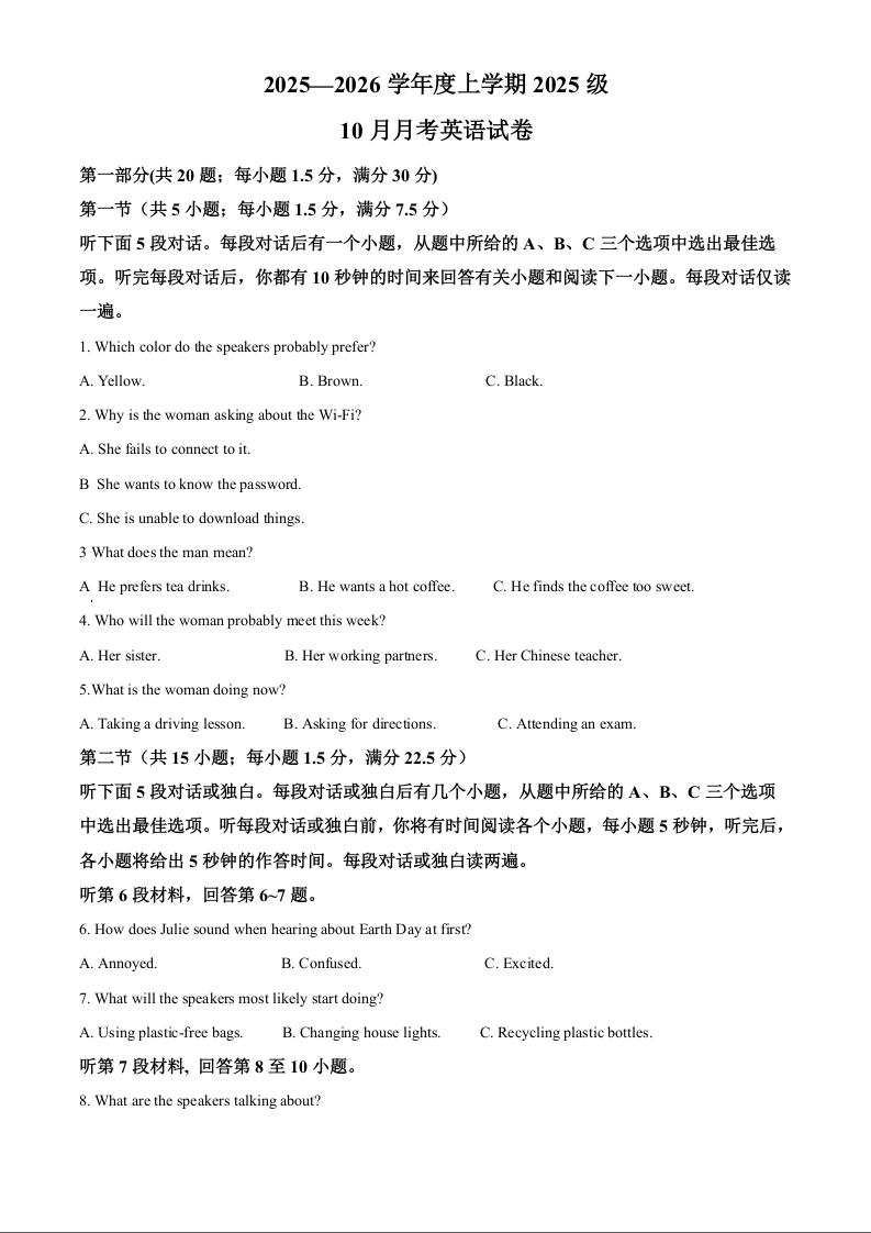 湖北省荆州市沙市中学2025-2026学年高一上学期10月月考 英语.docx