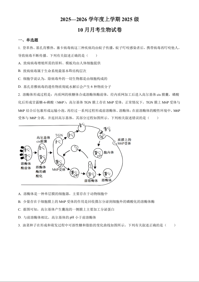 湖北省荆州市沙市中学2025-2026学年高一上学期10月月考 生物.docx