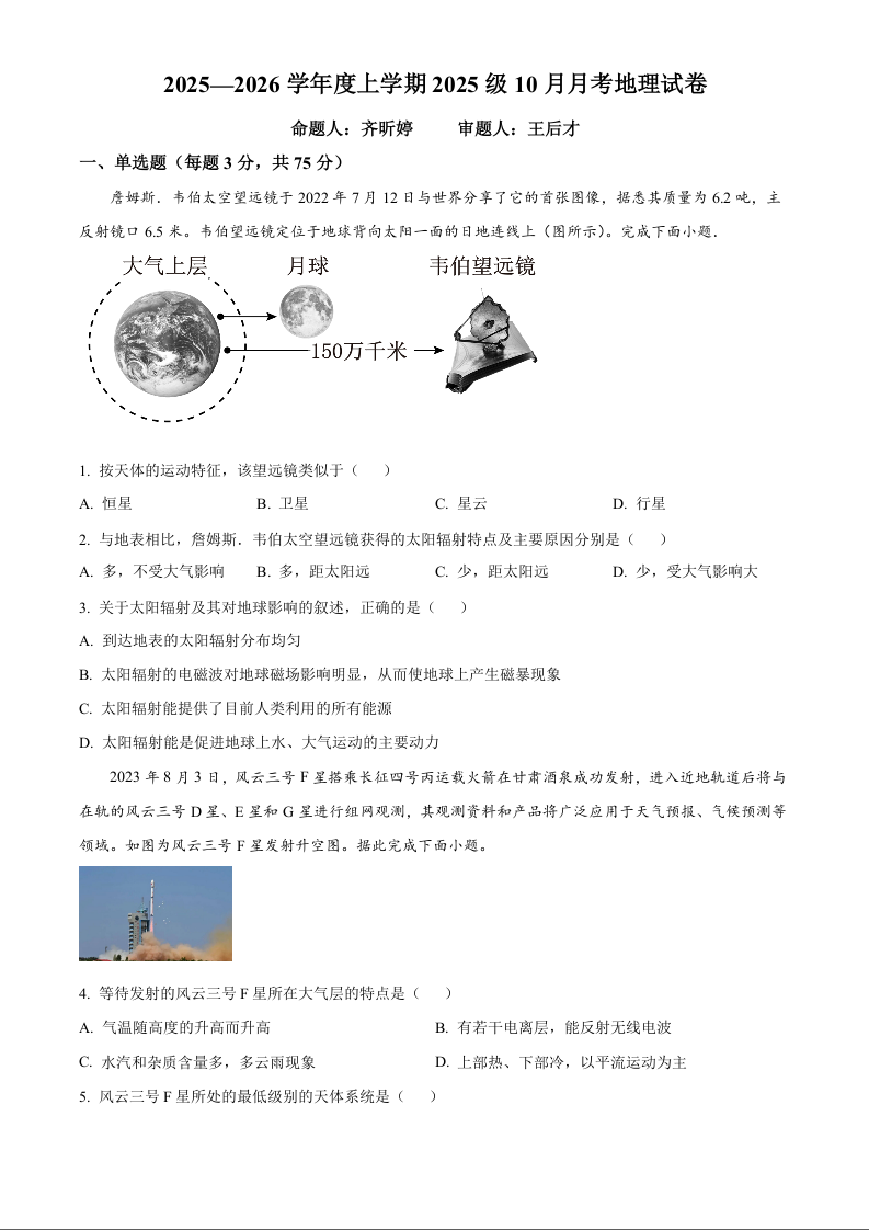 湖北省荆州市沙市中学2025-2026学年高一上学期10月月考 地理.docx