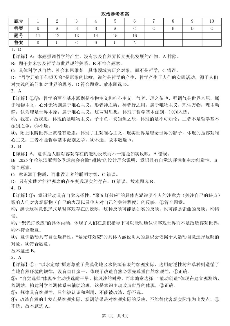 四川省南充市嘉陵一中2025-2026学年高二上学期10月月考 政治答案.docx