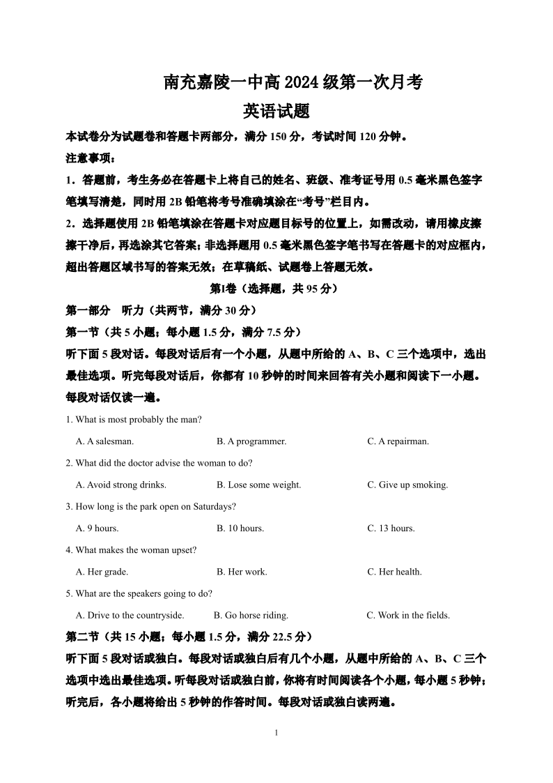 四川省南充市嘉陵一中2025-2026学年高二上学期10月月考 英语.pdf