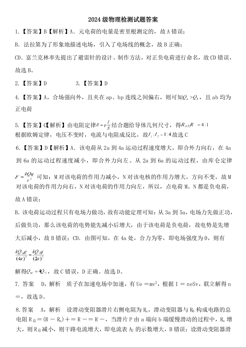 四川省南充市嘉陵一中2025-2026学年高二上学期10月月考 物理答案.doc