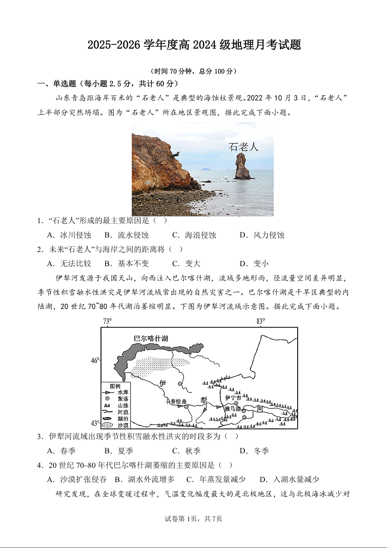 四川省南充市嘉陵一中2025-2026学年高二上学期10月月考 地理.docx