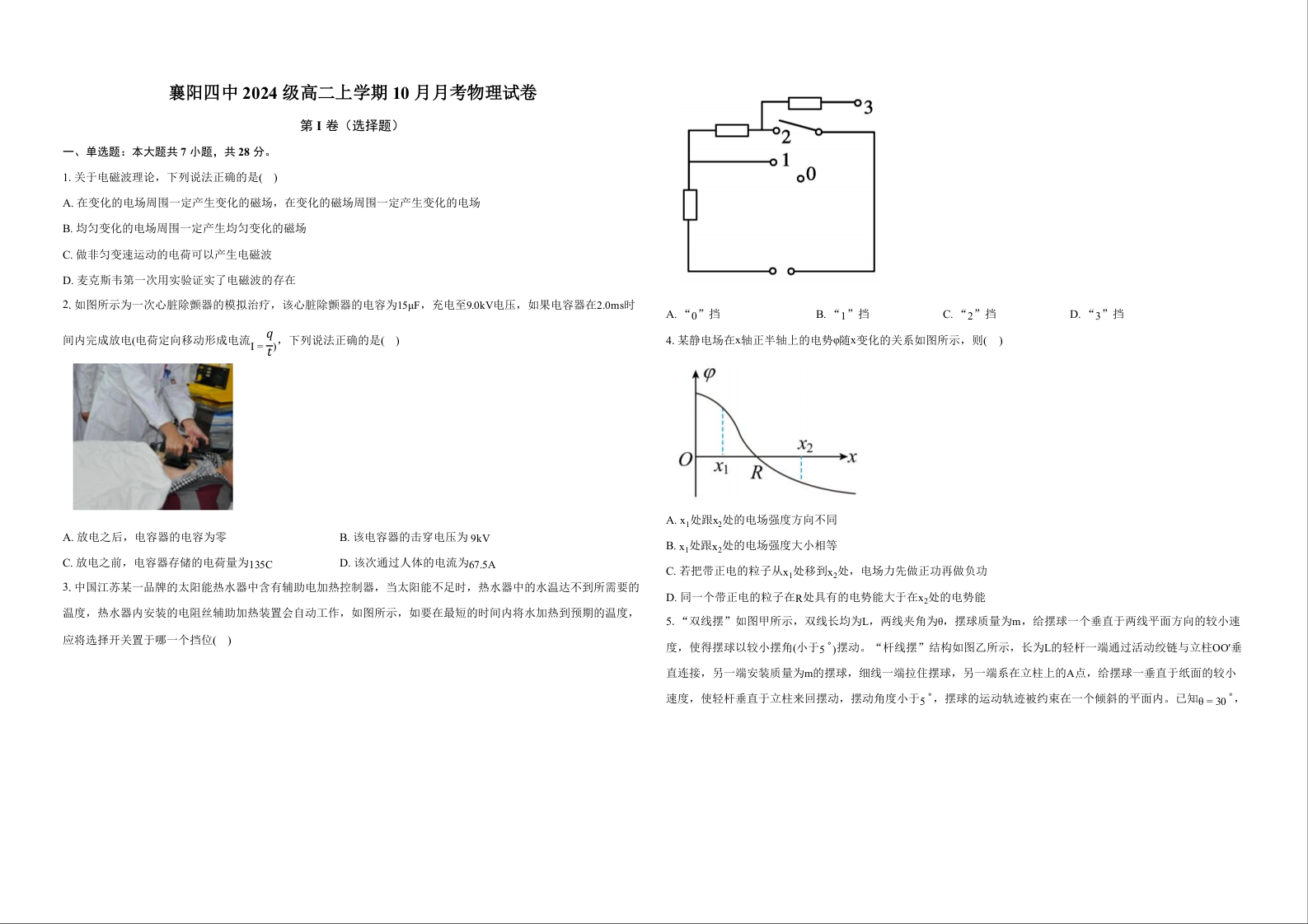 湖北省襄阳市第四中学2025-2026学年高二上学期10月月考 物理试题(含答案).docx