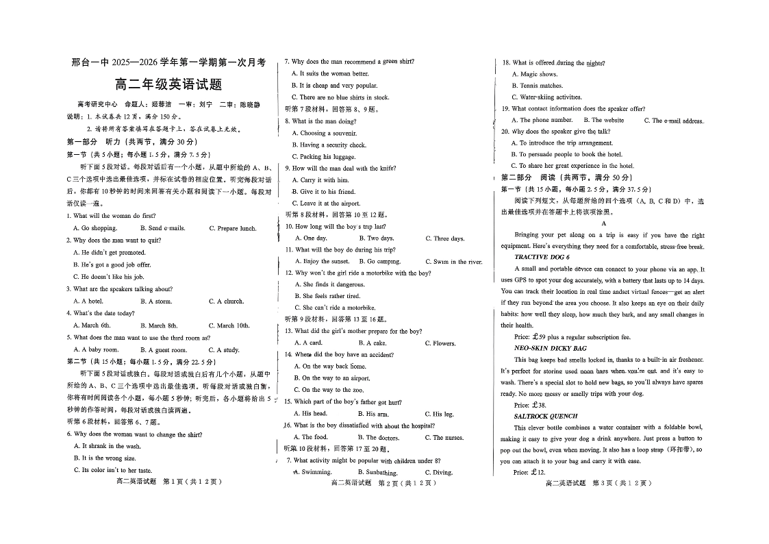 河北省邢台市第一中学2025-2026学年高二上学期10月第一次月考 英语试题(含答案).pdf