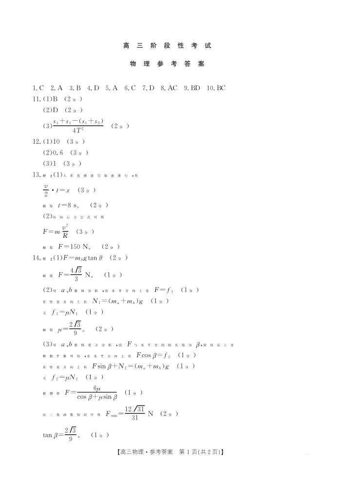 甘肃省2026届高三上学期10月联考 物理答案.pdf