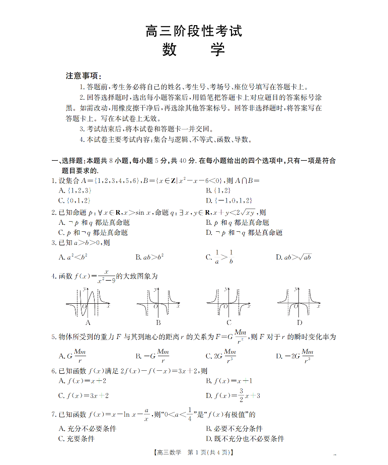 甘肃省2026届高三上学期10月联考 数学.pdf