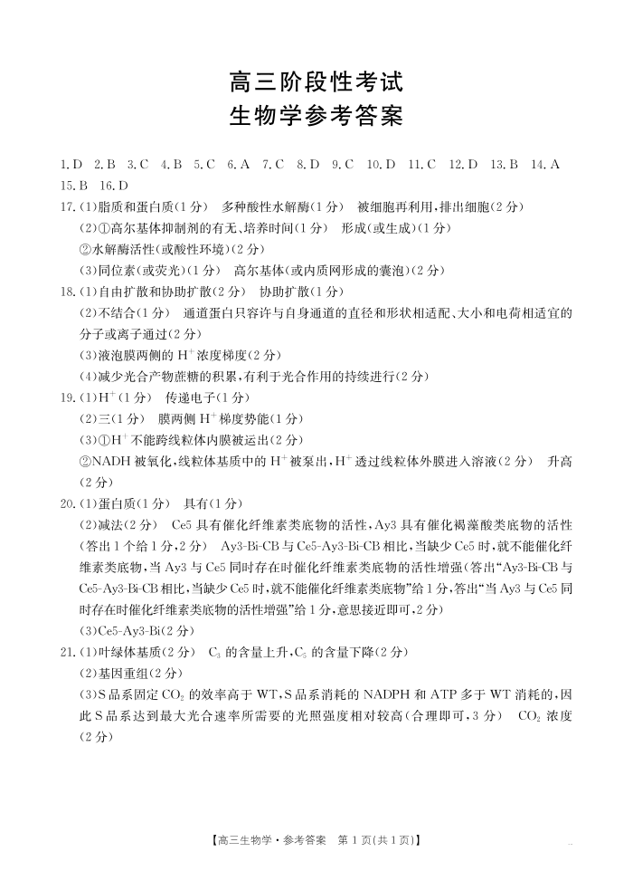 甘肃省2026届高三上学期10月联考 生物答案.pdf