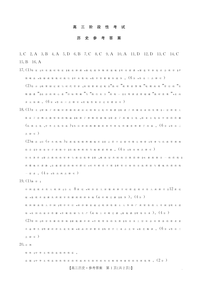 甘肃省2026届高三上学期10月联考 历史答案.pdf