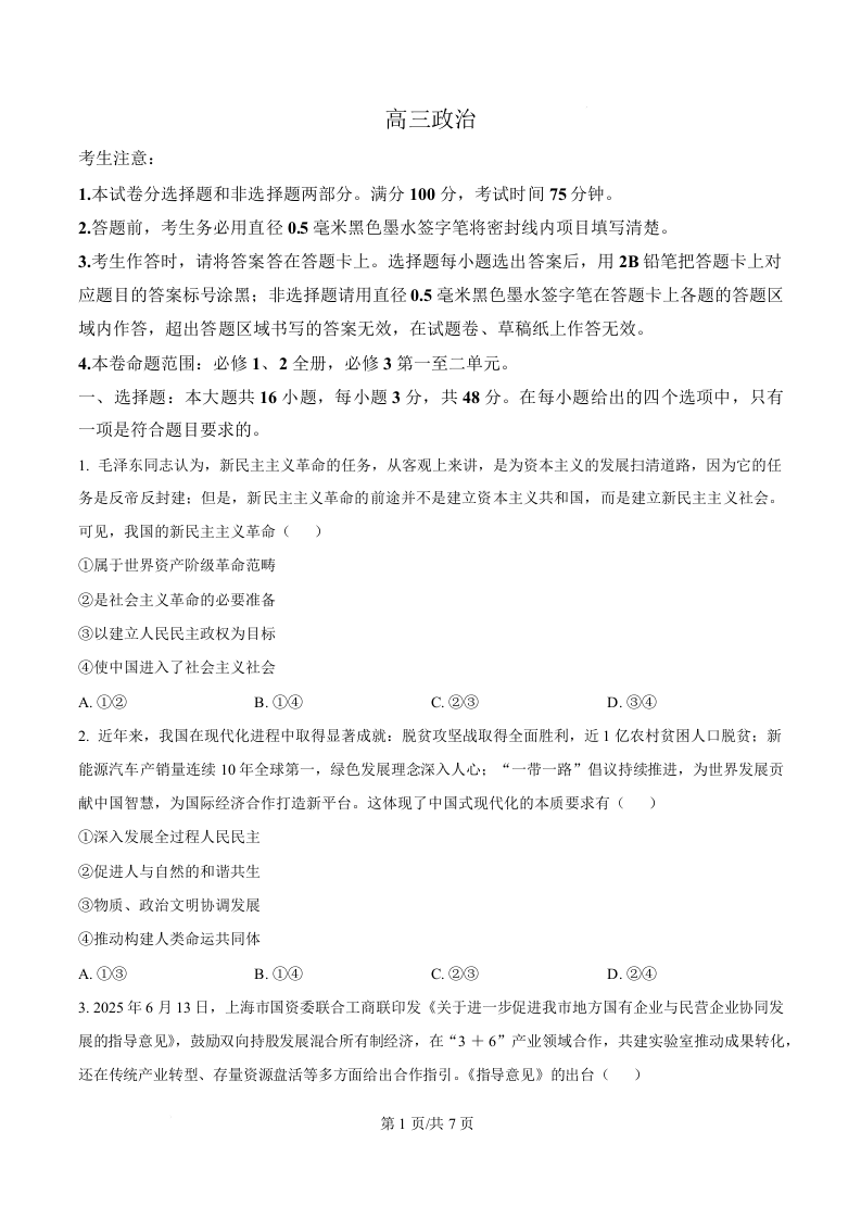 九师联盟2026届高三上学期10月质量检测 政治.docx