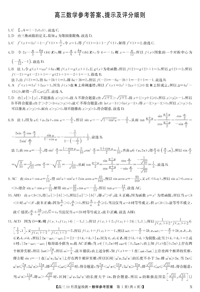 九师联盟2026届高三上学期10月质量检测 数学答案.pdf