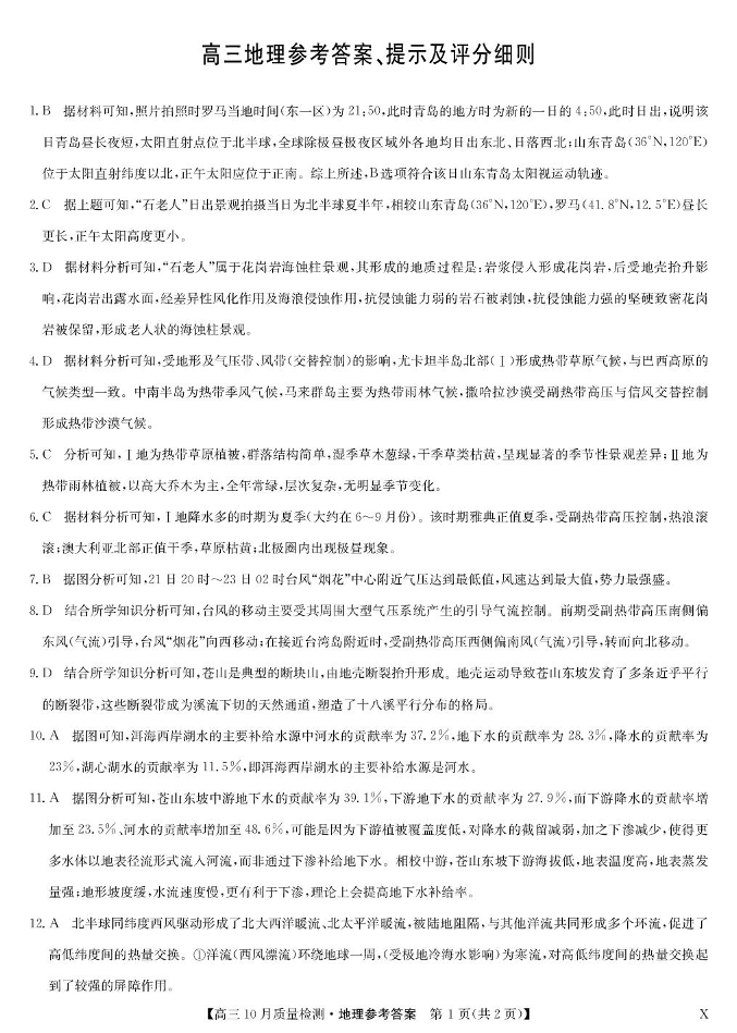 九师联盟2026届高三上学期10月质量检测 地理答案.pdf