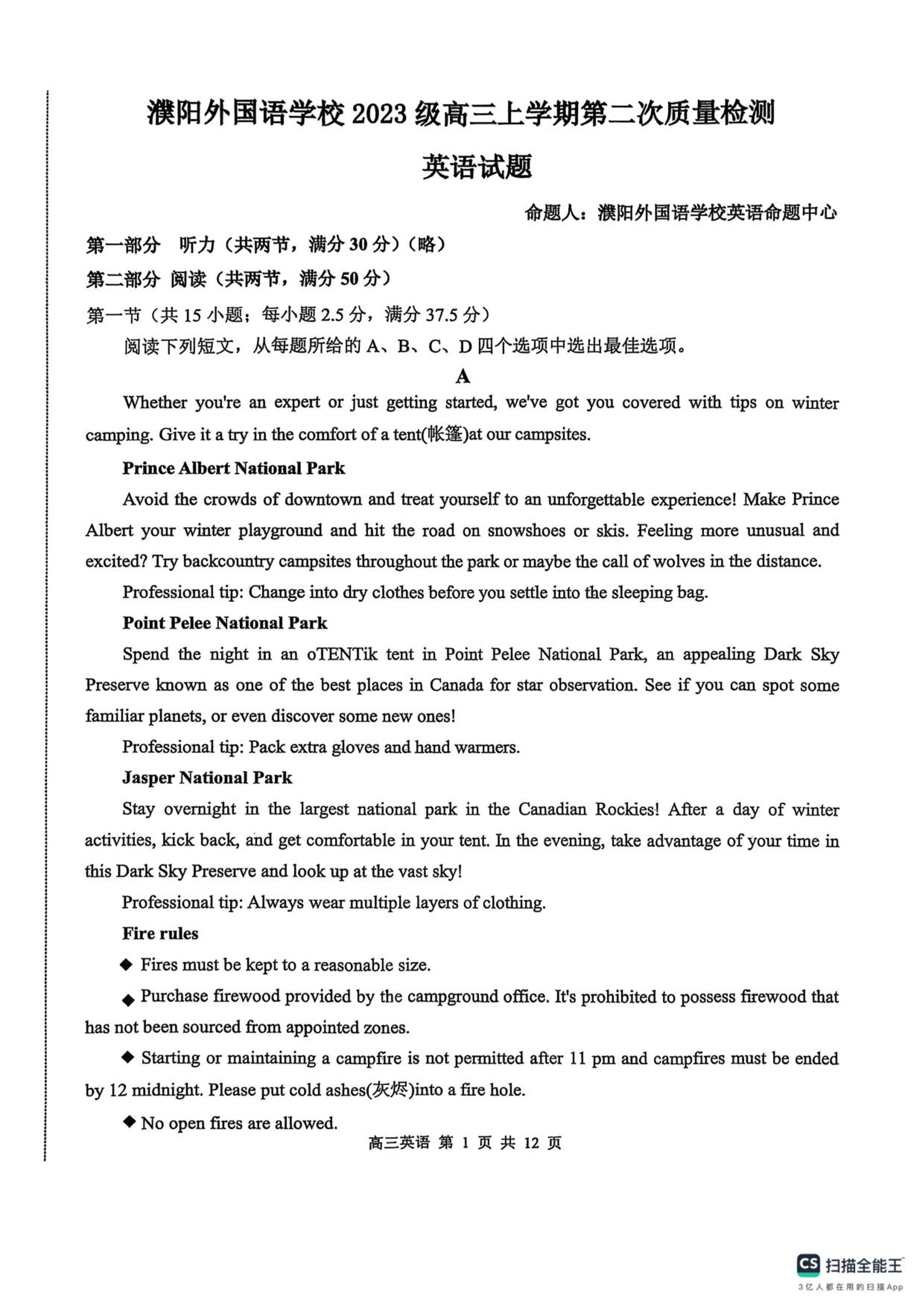河南省濮阳外国语学校2025-2026学年高三上学期第二次质量检测 英语试题(含答案).pdf