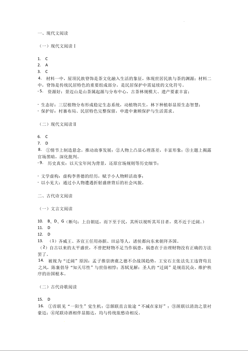 黑龙江省大庆市实验中学2026届高三上学期期中考试 语文答案.docx