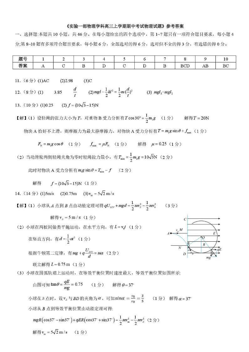 黑龙江省大庆市实验中学2026届高三上学期期中考试 物理答案.pdf