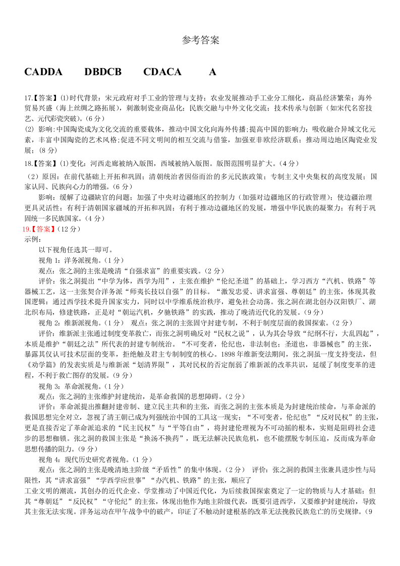 黑龙江省大庆市实验中学2026届高三上学期期中考试 历史答案.docx