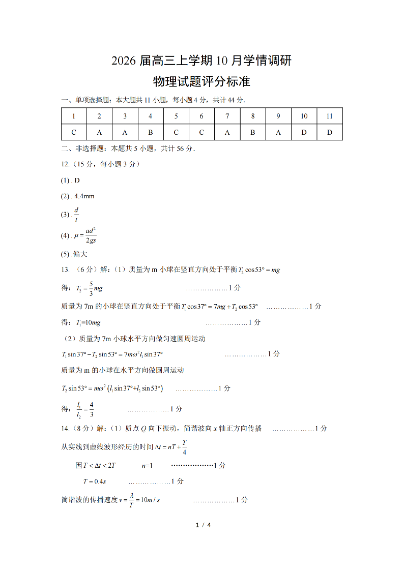 江苏省南京市、镇江市、徐州市联盟校2026届高三上学期10月学情调研 物理答案.pdf