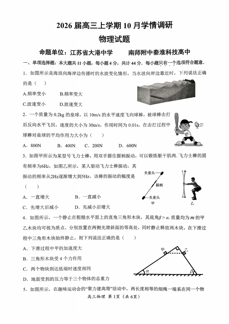江苏省南京市、镇江市、徐州市联盟校2026届高三上学期10月学情调研 物理.pdf