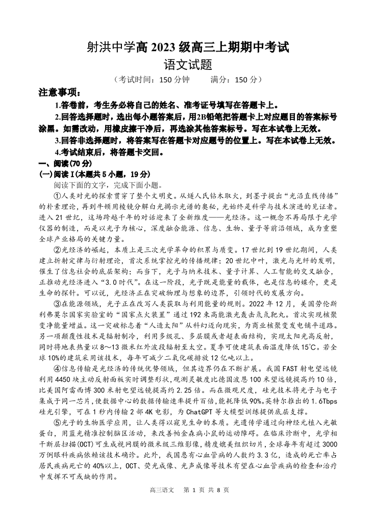 四川省遂宁市射洪中学2026届高三上学期期中考试 语文.pdf