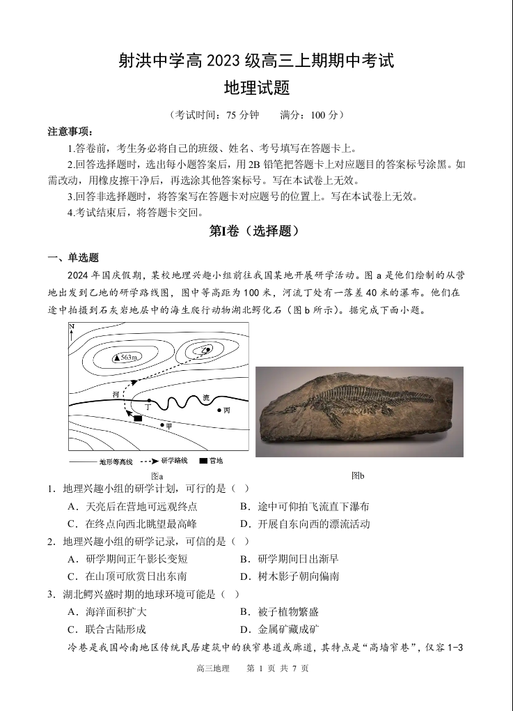 四川省遂宁市射洪中学2026届高三上学期期中考试 地理.docx