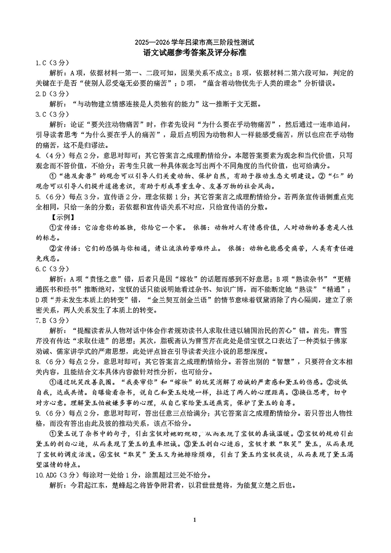 2025-2026学年吕梁市高三阶段性测试 语文答案.pdf