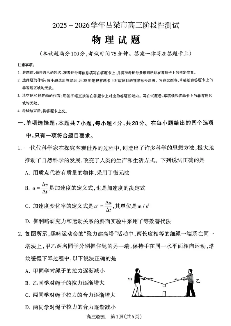 2025-2026学年吕梁市高三阶段性测试 物理.pdf