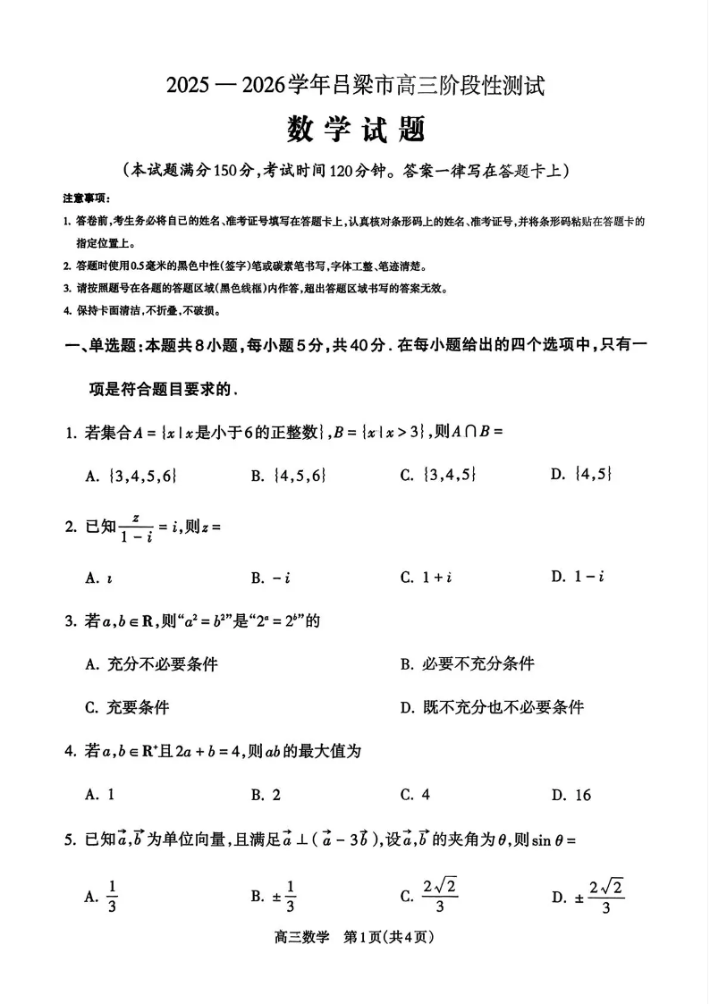 2025-2026学年吕梁市高三阶段性测试 数学.pdf