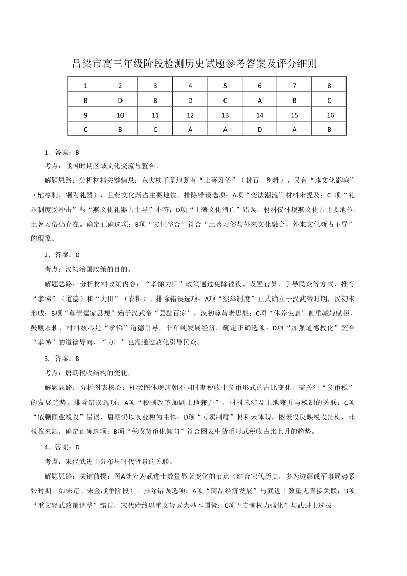 2025-2026学年吕梁市高三阶段性测试 历史答案.pdf