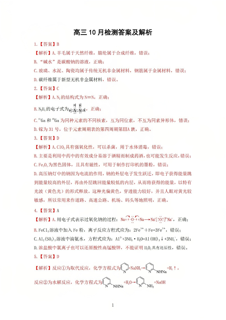 2025-2026学年吕梁市高三阶段性测试 化学答案.pdf