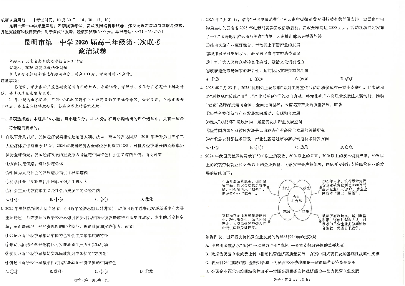 昆明市第一中学2026届高三年级第三次联考 政治.pdf