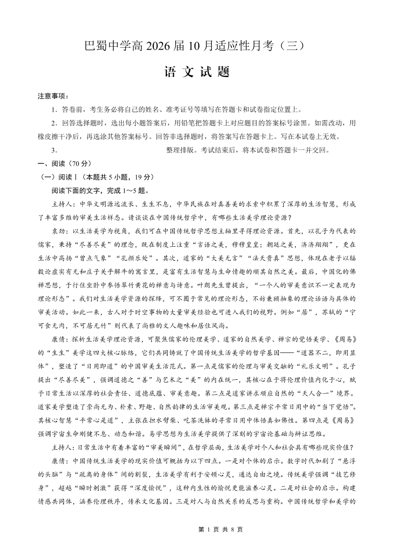 巴蜀中学2026届高考适应性月考卷(三)语文.pdf