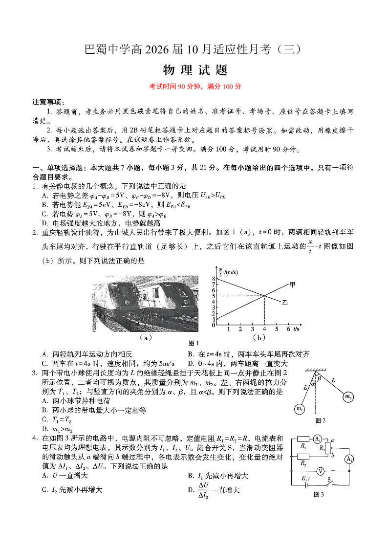 巴蜀中学2026届高考适应性月考卷(三)物理.pdf