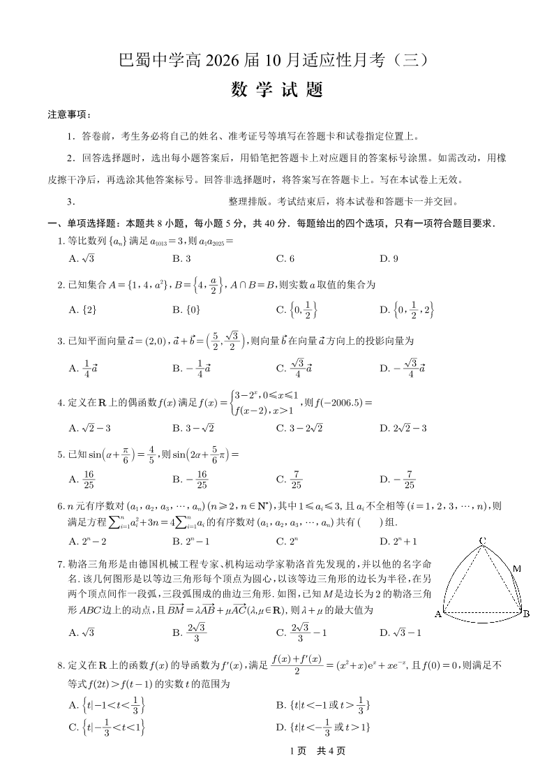 巴蜀中学2026届高考适应性月考卷(三)数学.pdf