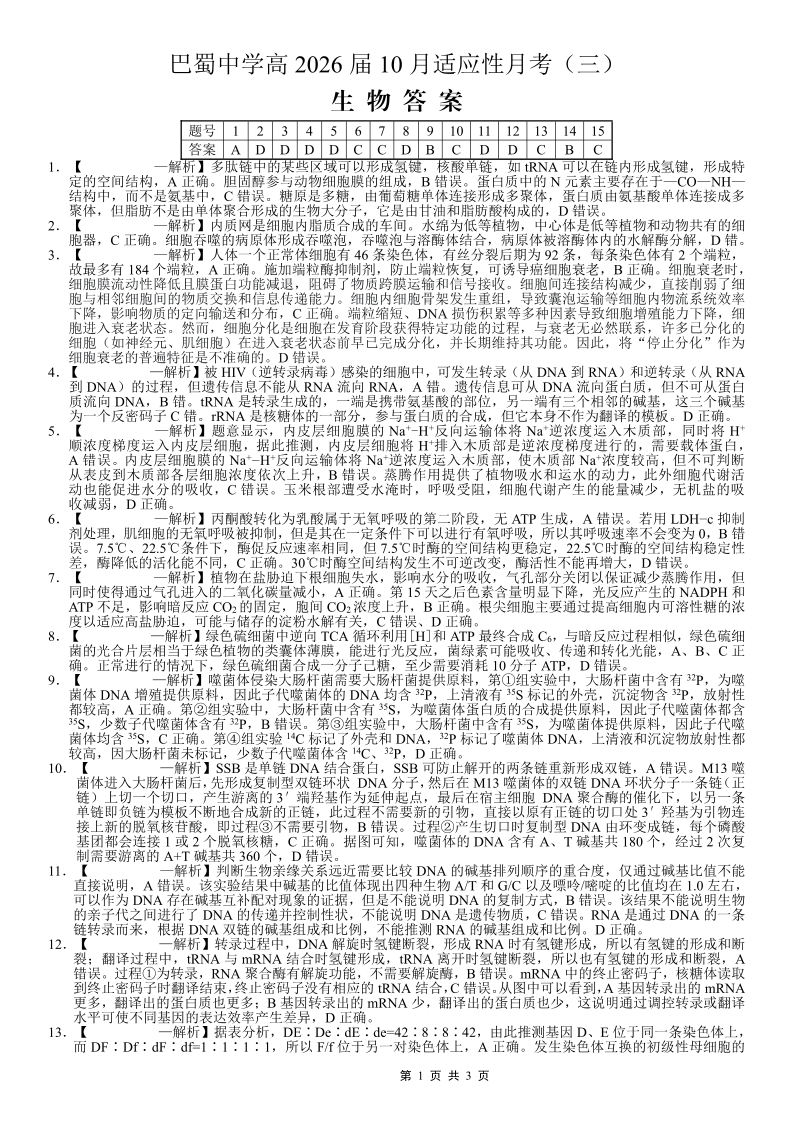 巴蜀中学2026届高考适应性月考卷(三)生物答案.pdf