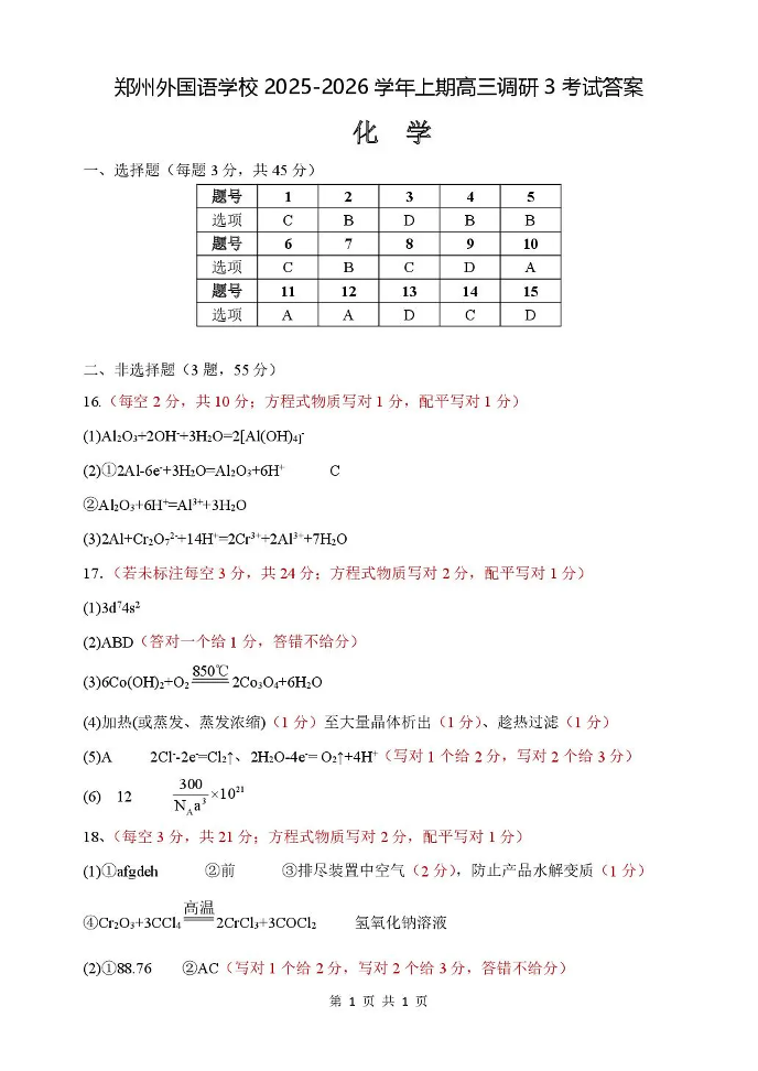 郑州外国语学校2025-2026学年高三上期第三次调研考试 化学答案.pdf