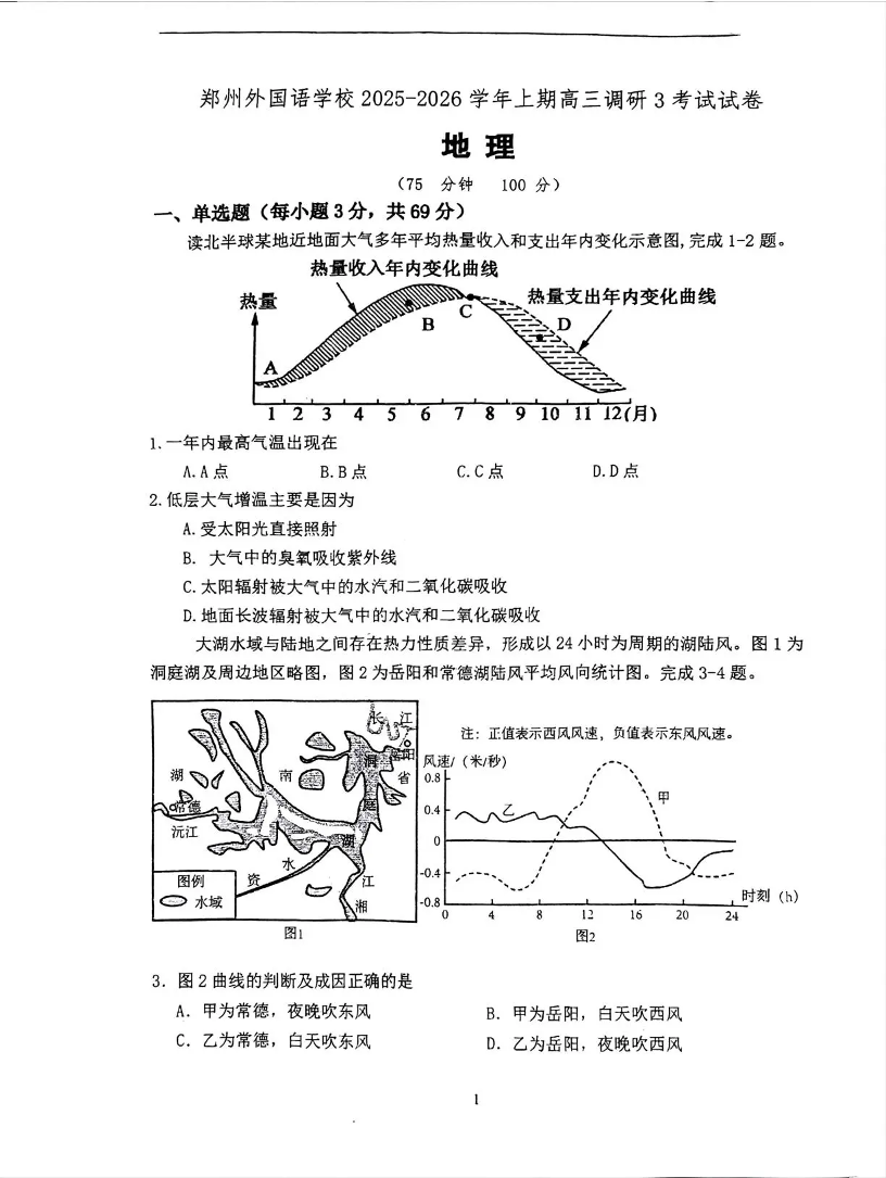 郑州外国语学校2025-2026学年高三上期第三次调研考试 地理.pdf