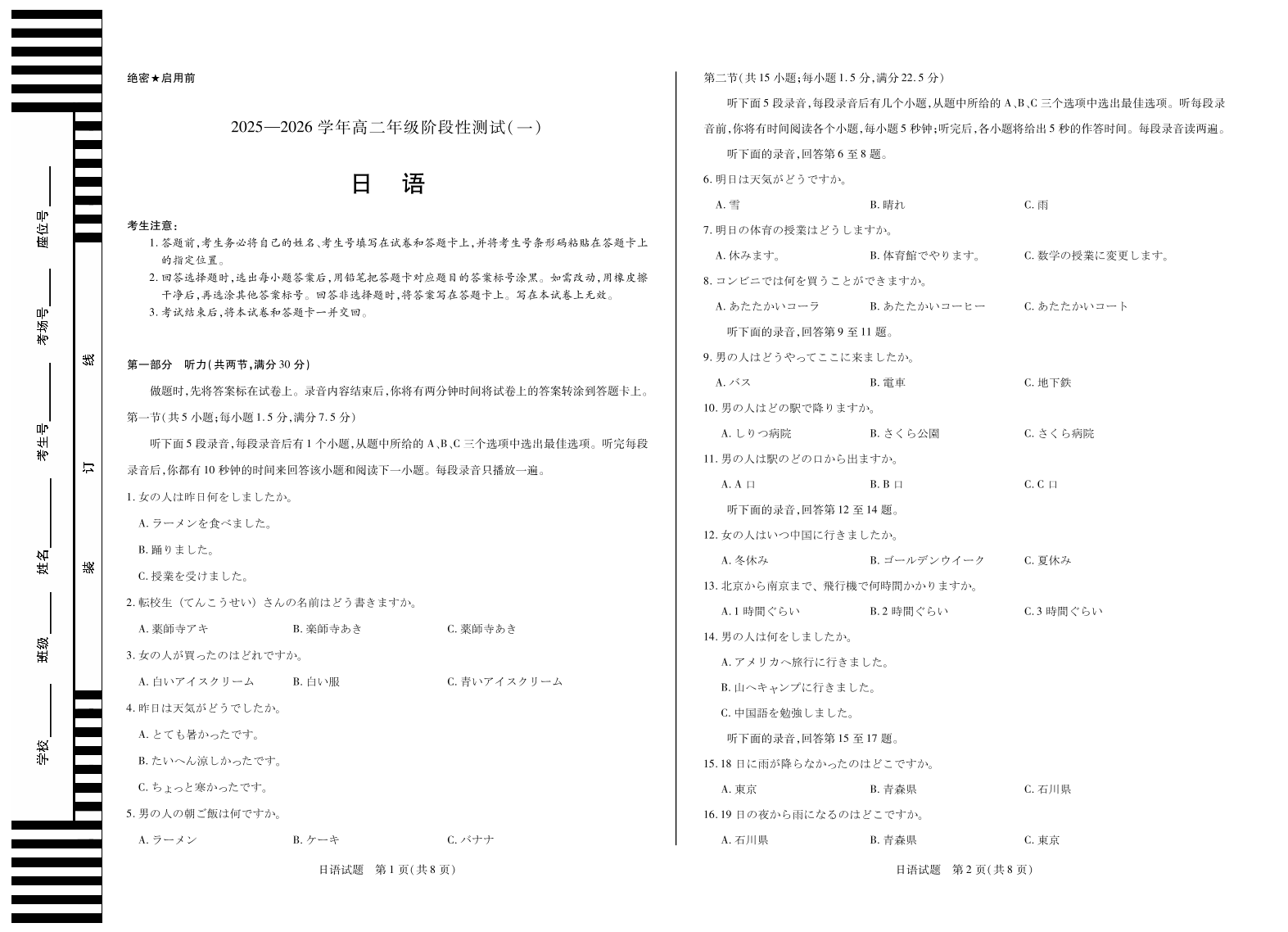 【日语】天一大联考·2025-2026学年高二年级阶段性测试(一).pdf