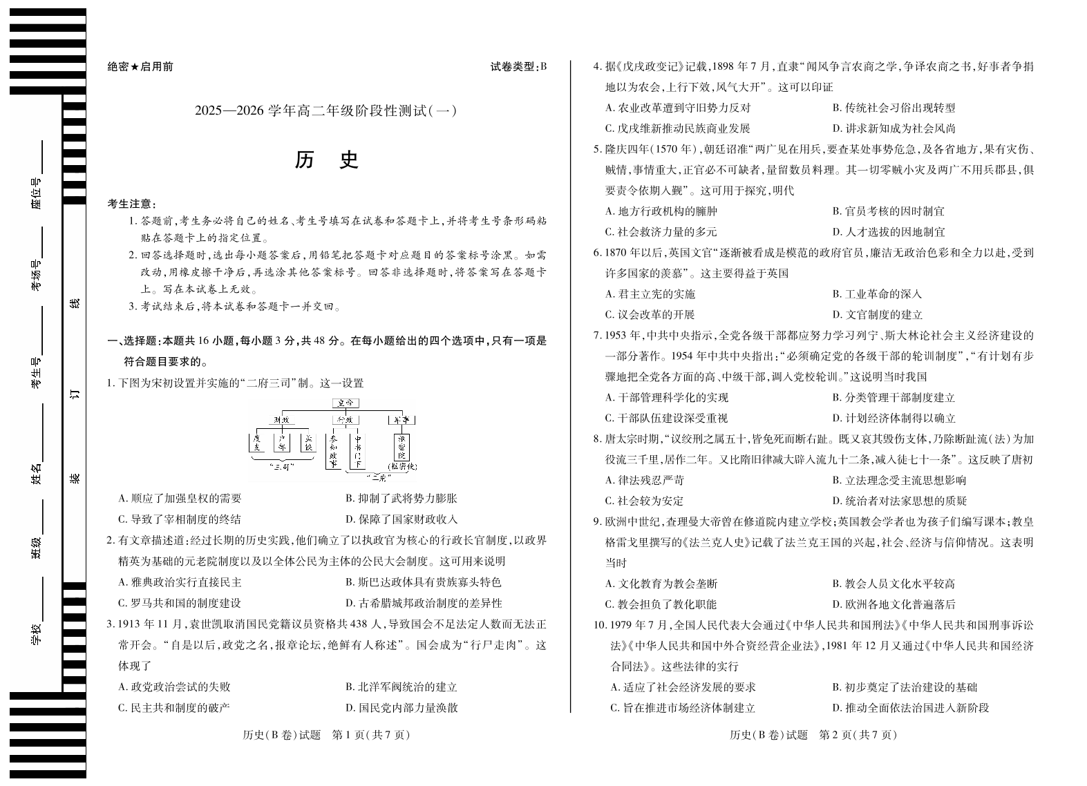 【历史B卷】天一大联考·2025-2026学年高二年级阶段性测试(一).pdf