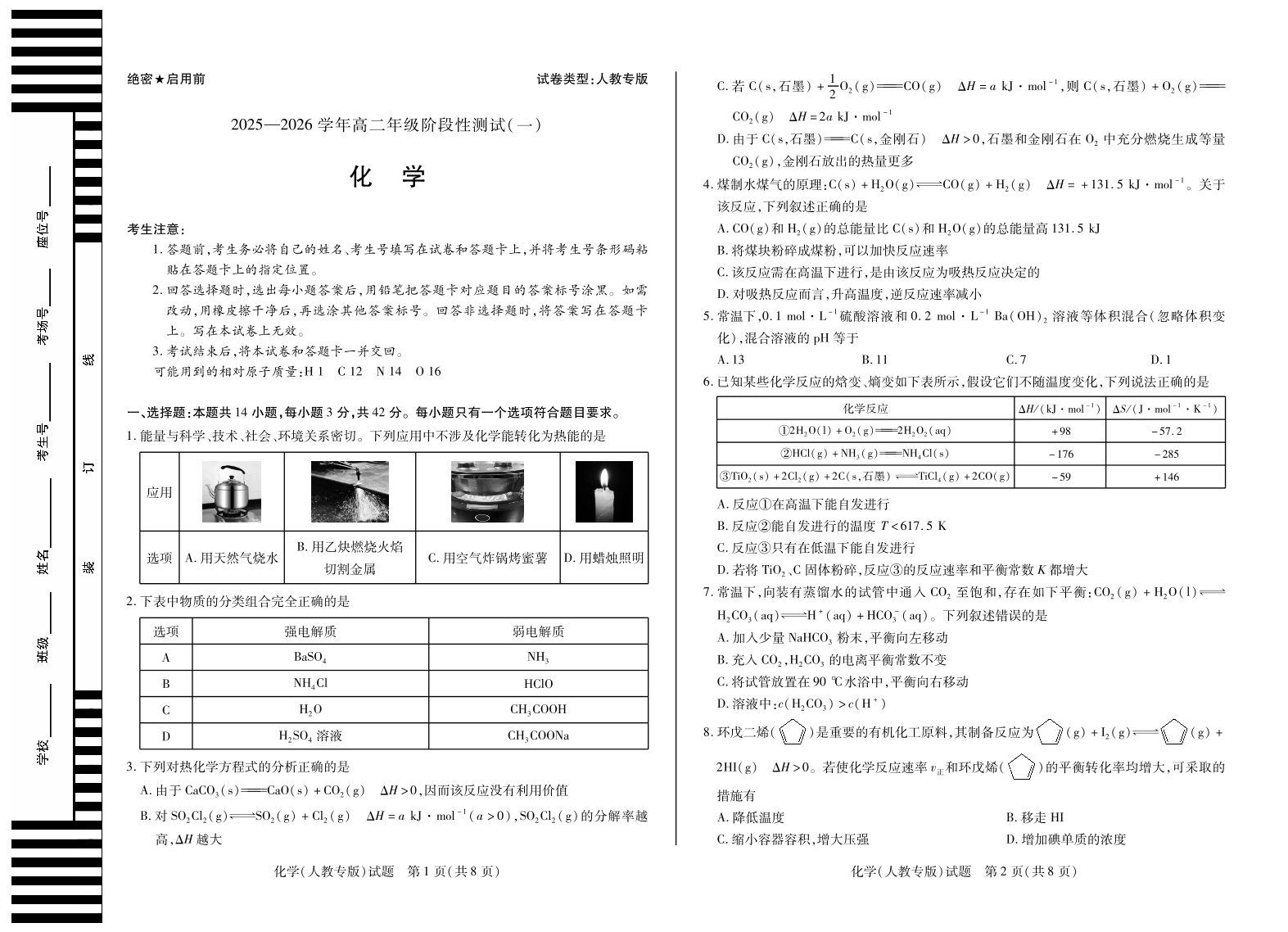 【化学人教专版】天一大联考·2025-2026学年高二年级阶段性测试(一).pdf